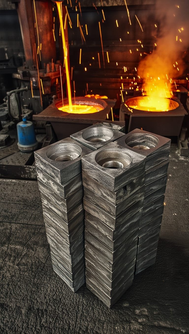 Colado de metal liquido en moldes para fabricar piezas personalizadas a tu medida.